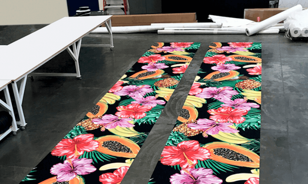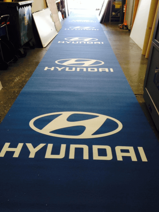 Tulostetulla messumatolla logot ja värit prikulleen oikein osastosi lattiaan