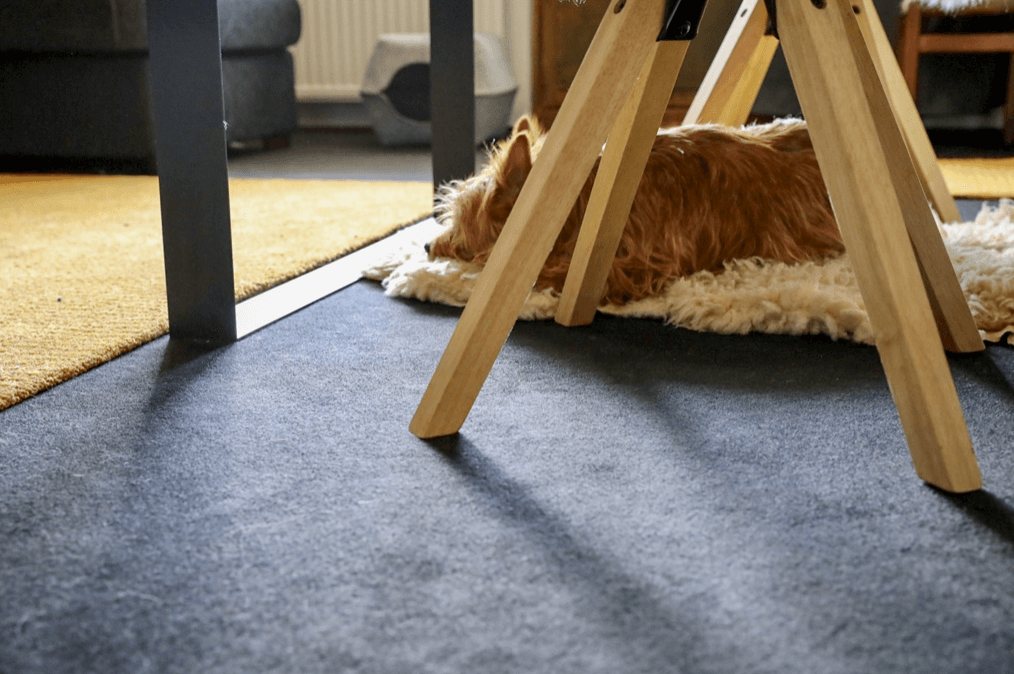 Myös lemmikkien kanssa messumatto pitää pintansa hyvin. Verrattuna edullisimpiin laminaatteihin, messumatto on lemmikinkin tassun alla huomattavan pitävä ja hiljainen. Koirien vauhdikkaimmista leikeistä voi toki jäädä kynnenjälkiä, mutta karvat irtoavat imurilla siinä missä esimerkiksi sohvastakin.