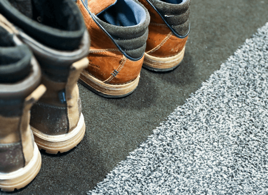 Messumatossa ei ole kumipohjaa, joten se sopii sellaisenaan myös lattialämmitettyihin tiloihin – eikä jätä ”kiinni palaneita” kohtia pitkänkään käytön jälkeen. Huoneen sisustusmatot pysyvät mattapintaisen messumaton päällä hyvin paikallaan.