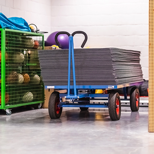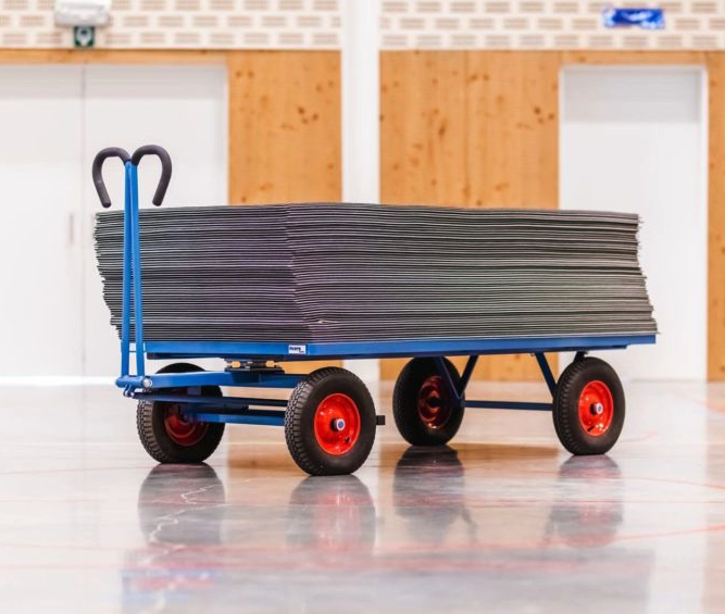 Palamattojen kuljetuskärry mahdollistaa 1 x 2 m kokoisten palamattojen kätevän liikuttelun ja varastoinnin vaivattomasti.