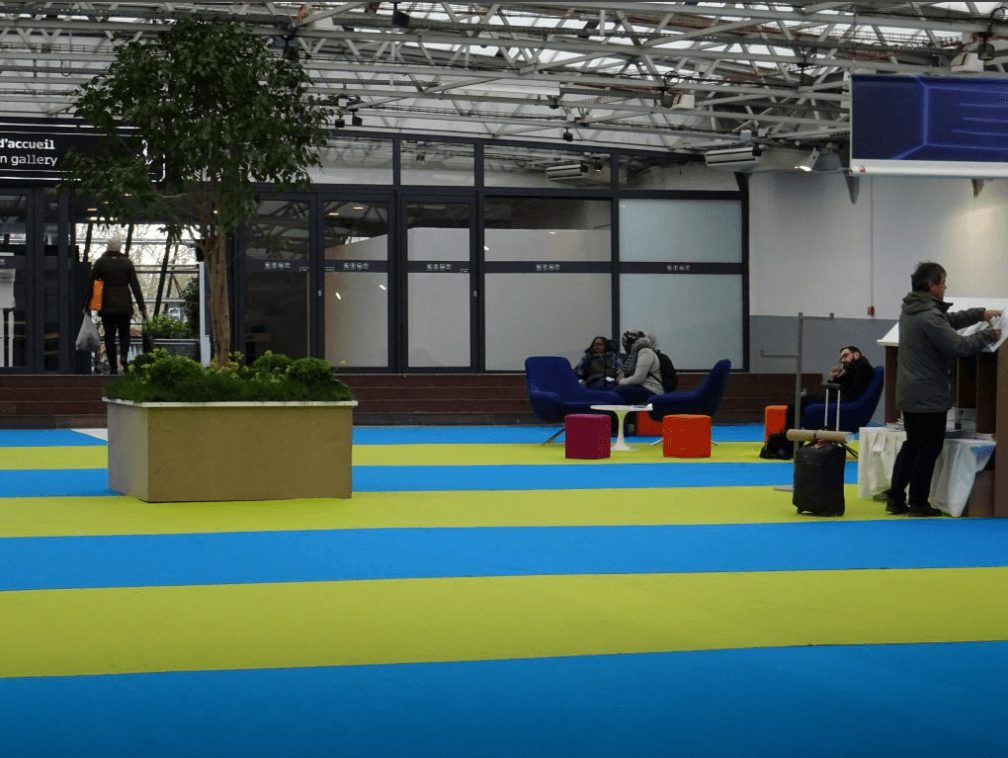 Tämäkin helposti asennettava ja hyvin lattiaan asettuva messumatto on 100% kierrätettävä!